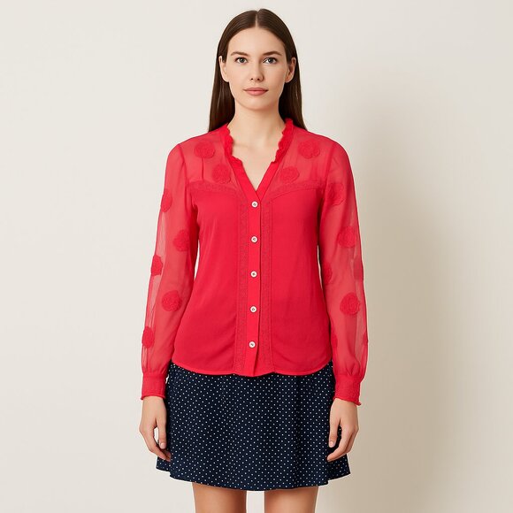 Anthropologie Meadowrue Red Sheer Lace Buttondown size Small NWOT