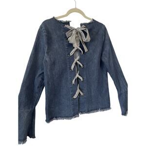 Womens Anthropologie Moelleux Raw Hem Denim Jean Back Gingham Lace Up Top - Sz M