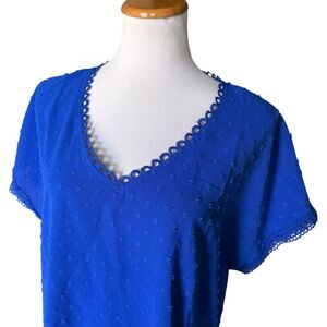 Womens Anthropologie Perch Swiss Dot Scalloped Royal Blue Top - Sz 1X
