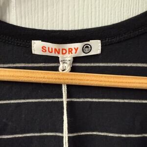 Sundry black & white T-shirt tank dress with cute pom pom hem trim. One chest pocket, A-line size 1 (womens Small) Top of shoulder to hem is 36 inches. 96% Cotton 4% Spandex. Made in the USA.