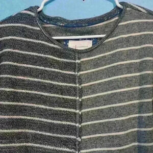 this is an Anthropologie size S, medium weight pullover with dark navy blue/ white stripe. cotton polyester and viscose blend. great condition. measures approximately 22" pit to pit, approximately 22" shoulder to hem