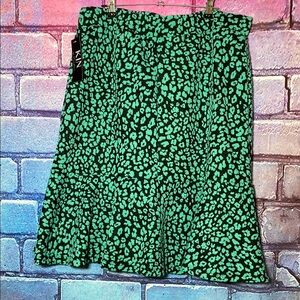 Women's Anthropology + Kin Green Patterned Midi-Skirt With Cheetah Print Size 2