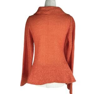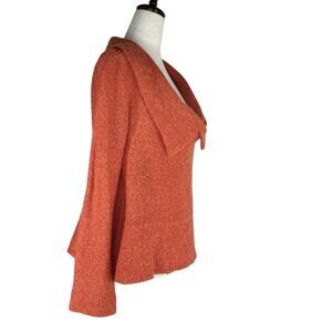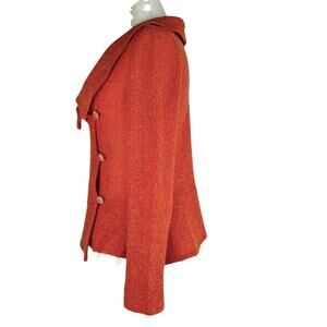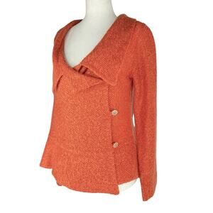 Keywords: Womens Antonie et Lili Wool Knit Jacket, Art to Wear, Button Up, Scoop Neck, Size 8, Lagenlook, Boho, Bohemian, European, Decorative Buttons, Collared, Wrap, Flared Hemline, Long Sleeve, Orange, Pink, Knitted, Sweater,