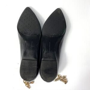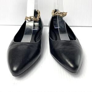 Women's Antonio Melani Ankle Chain Strap Pointed Toe Flats Black Leather 7 M