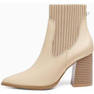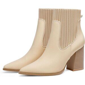 ⚡Women's Apricot Ankle Boots Sock Booties Pointed Toe Chunky Stacked High Heel