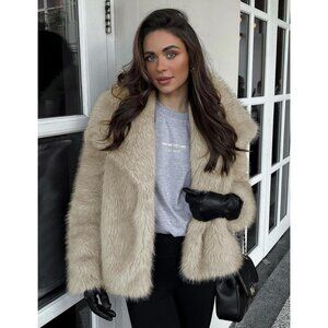 Womens Apricot Faux Fur Coat Fluffy Shaggy Long Sleeve Winter Warm Jacket