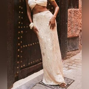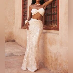 Women's Apricot Sequin Two-Piece Maxi Skirt Set A Stunning Strapless Knitted Top