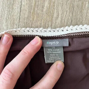Womens size 14 Apt. 9 Brown bikini bottoms Lace detail around waist 80% nylon, 20% spandex Smoke free home