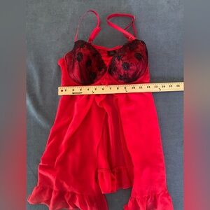 Womens Apt 9 Intimates Red & Black Lace Slit Ruffled Spaghetti Strap Lingerie XL