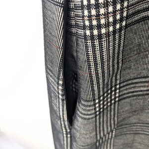 Grey Black, Color Plaid: 77% Polyester/12% Rayon/9% Nylon/2% Spandex.