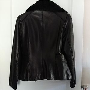 Women's Apt. 9 black leather jacket with removable fur collar. Size Small.