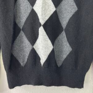 Twee academia preppy prep cashmere Argyle office siren 100% Cashmere V-neck, Pullover, Argyle Pattern Apt. 9 100% Cashmere Sweater Pullover V-neck Argyle Diamond Pattern Black Grey White Classic Timeless Luxury Soft Warm Layering Piece Women's Apparel Preppy Grandpacore Country club