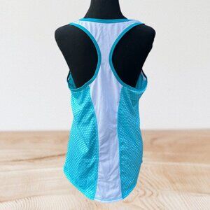 Stay cool and comfortable during workouts with this sporty racerback tank top. Designed in a refreshing aqua blue with white mesh paneling, it offers both style and performance. The lightweight, moisture-wicking fabric keeps you dry while allowing full range of motion—perfect for running, yoga, or the gym.