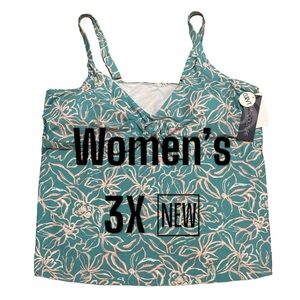 Womens Aqua Couture 3X Tankini Padded Keyhole Swim Swimwear Tank Top Blue NWT
