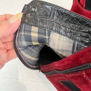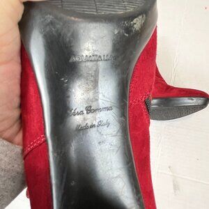 Women's Aquatalia Red Suede Heeled Bootie, Size 38.5 EU