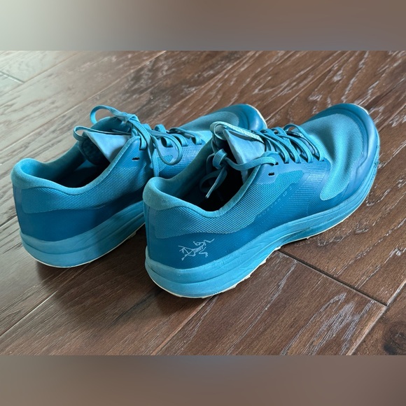 Women’s Arc'teryx Norvan LD 2 Turquoise Blue Lightweight Trail Shoes. Good worn condition, only issue I see is a scuffed area on the side of the toe of the right shoe. See photos for condition.