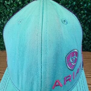 Women’s Ariat Adjustable Teal Purple Pink Striped Logo Cap Trucker Hat