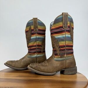 Womens Ariat Circuit Feather Brown Leather Western Cowboy Boots Size 6.5 B GUC
