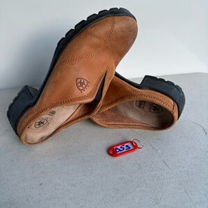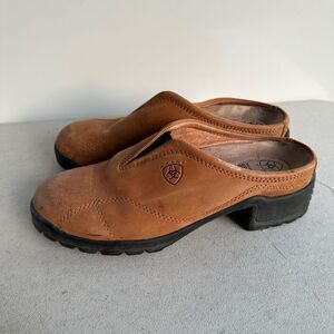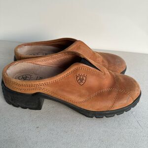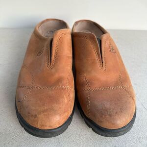 Womens Ariat Tan Leather Mules Shoes Clogs Slip-On 7