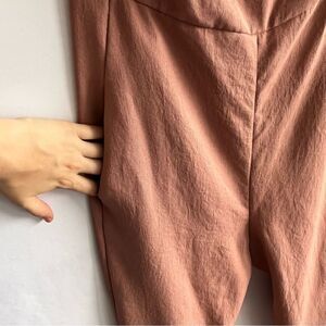 Size 0 Neutral Nude Tan Rose Mauve Color Cropped Length This is a jumpsuit with built in corset detailing. It's made with a textural basketweave fabric from Japan.
