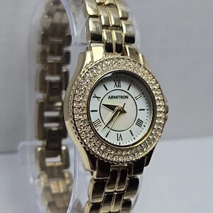 Womens Armitron Crystal Gold Tone Bezel MOP Dial New Battery 30mm 75/5332