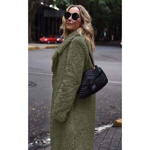 Women's Army Green Fleece Lapel Open Front Long Cardigan Coat Fur Warm Winter