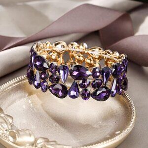 Women's Art Deco Crystal Stretch Wedding Bridal Bracelet for Prom and Special Oc