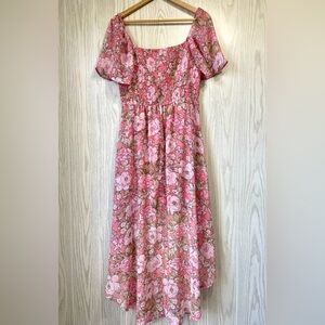 Womens As U Wish Pink Floral Ruched Chiffon Playful High Low Dress - Sz L EUC