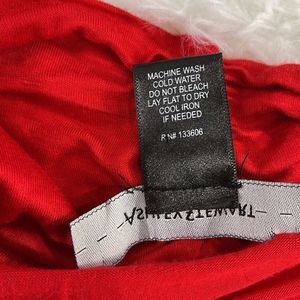 Details: Red stitching 96% rayon 4% spandex machine wash made in USA RN 133606.