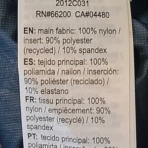 Very lightweight and packable. Light/ Dark Blue in color. Full zipper. Two pockets with zipper closure. When laying flat on a table, the measurements are 21 inches from armpit to armpit and 23 inches in length. Ships quickly.