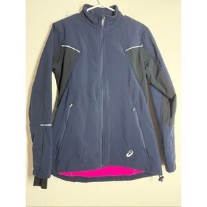 Women’s Asics Running Jacket Blue/ Black, Fuchsia Inside Size M Pockets