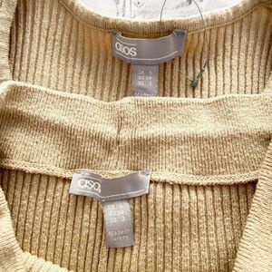 Womens Asos Tan Nude Neutral Rib Knit Slim Co-Ord Size 2 Loungewear Cozy Demure