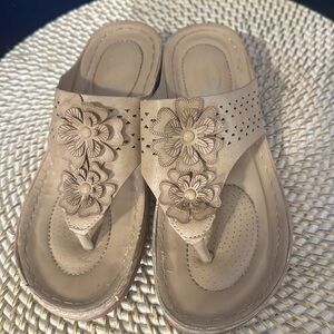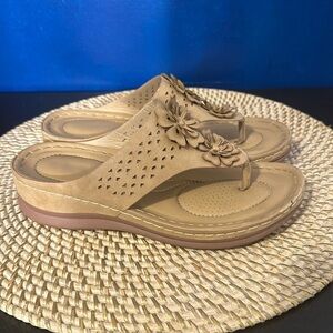 Women’s Atalina Tan Flower Design Flip Flop Sandals Size 37 US Size 6.5