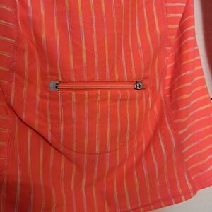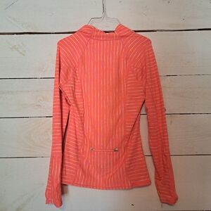 Women's Athleta Bright Orange Striped Jacket W/ Pocket, Thumb Holes Size Small