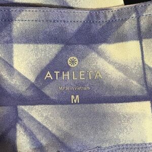 Up for sale is a pair of Athleta blue and white geometric print Capri Leggings in size medium. These leggings are perfect for any active occasion.