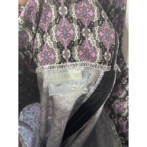 The Women's Athleta Everywhere Dress in size 10 Petite with a geometric pattern is a stylish and versatile sundress perfect for everyday wear. The halter neckline adds a touch of sophistication, while the knee length design is flattering for petite figures. This multicolor dress from Athleta combines comfort and style, making it a must-have piece in any woman's wardrobe.