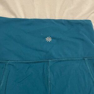 Teal colored Athleta leggings size XXS women's. 7/8 length, Color looks like it does in the first picture. Good condition, minor wear.