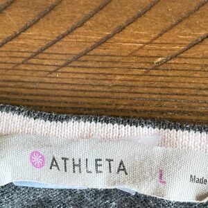Women’s Athleta Sweater Size Large Gray with Pink Arm Stripes Crew Neck Some piling see photos
