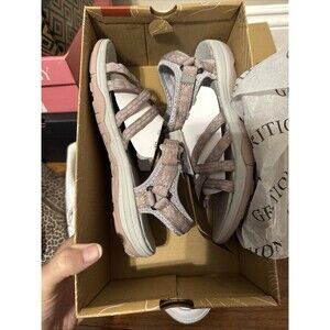 The Women's Athletic Adjustable Sandals by Grition in Gray/Pink are designed for hiking and outdoor sports. Featuring an open toe design and slingback style, these sandals are both stylish and functional. Made of faux leather, they are durable and easy to clean. The adjustable feature ensures a comfortable fit, while the gray color adds a versatile touch to any outfit. Perfect for women who enjoy staying active in nature, these sandals are a practical and fashionable choice for your outdoor adventures.