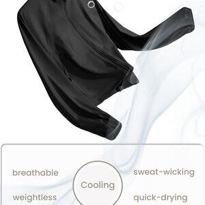 Features: Lightweight, stretchy fabric with a loose fit that feels comfortable and moves with you. Features a turndown collar, elastic cuffs, and two handy pockets—great for running, yoga, or just a relaxed day out.