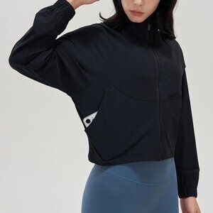 Women's Athletic Cropped Jacket - Zip Up Long Sleeve for Ultimate Comfort