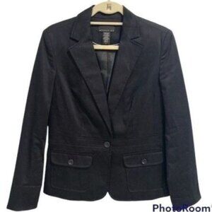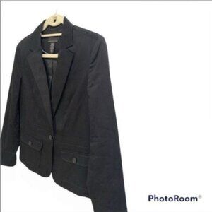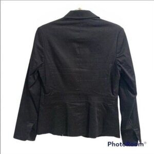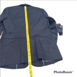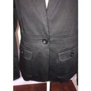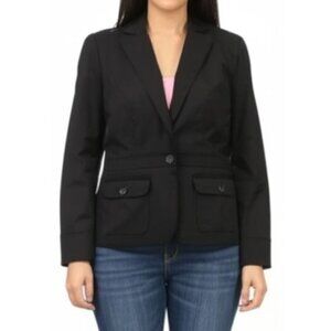 *Single-button closure at the front. Notched lapels. Two lower front pockets with buttoned flaps. Back has a slight peplum flare below the waistline.