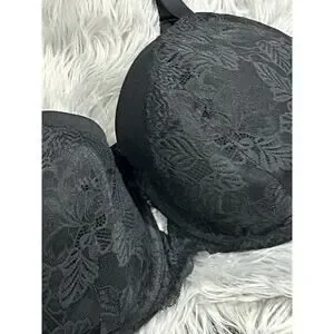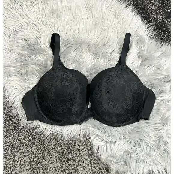Womens Auden Black Lacey Lightly Lined Balconette Coverage Underwire SZ Bra 46D