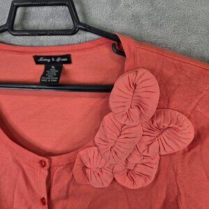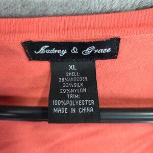 Womens Audrey & Grace Coral Cardigan Floral Detail Button Up Silk Blend Size XL