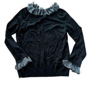 Womens August Silk Blend Snow Leopard Ruffle Collar Sweater Sz XL Black