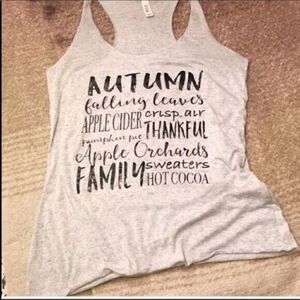 Super soft graphic racerback tank top with a list of Fall favorites!