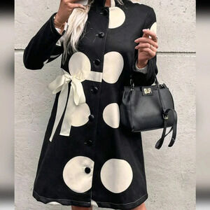 Women's Autumn/Winter Geometric Print Side Tie Long Sleeve Elegant Coat