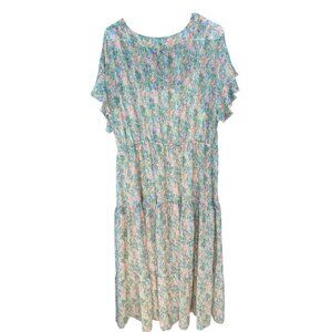 Women's Ava & Viv Pastel Floral Tiered Maxi Dress Flutter Sleeves Plus Size 1X