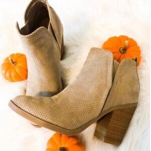 Women's Avalyn Microsuede Laser Cut Bootie - Universal Thread Taupe 9.5