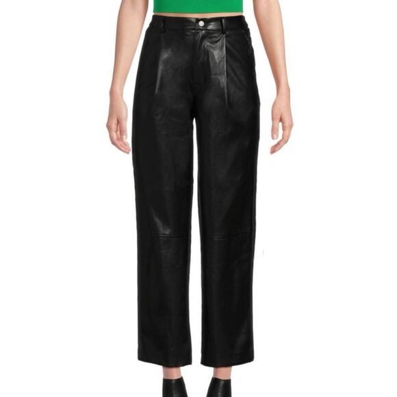 Womens Avec Les Filles Anthropologie Black Faux Leather Wide Leg Pants Sz Large